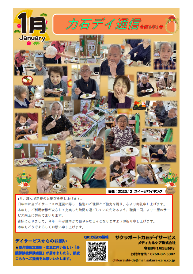 サクラポート力石デイサービスです。 今回は12月に行われたスイーツバイキングの様子を載せました。 いろいろなスイーツを堪能され、皆様の素敵な笑顔が広がっていますね。 どうぞご覧下さい。今年もよろしくお願いいたします。