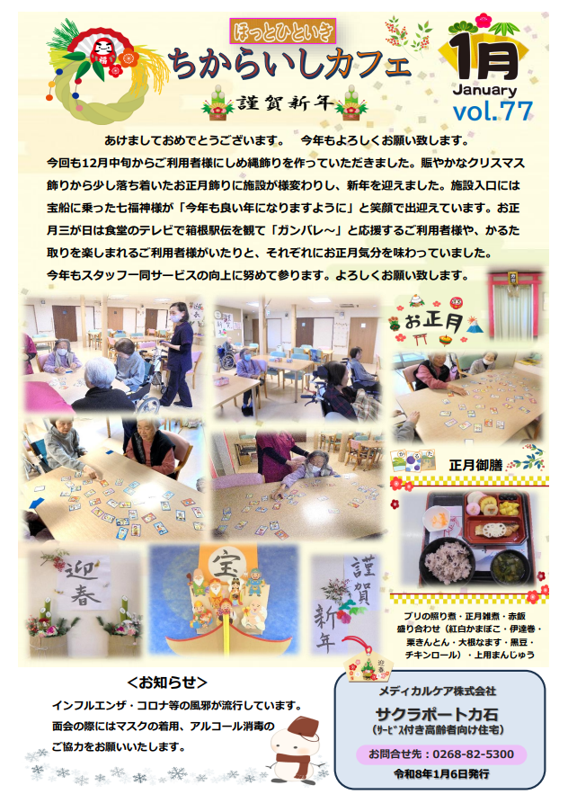 サクラポート力石です。 今回はかるた取りを楽しまれているお正月の様子を載せました。 どうぞご覧下さい。今年もよろしくお願いいたします。
