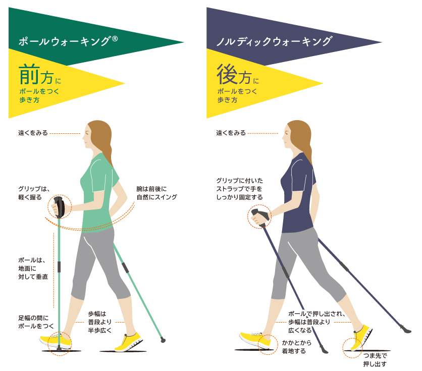 ポールを使用した歩き方は