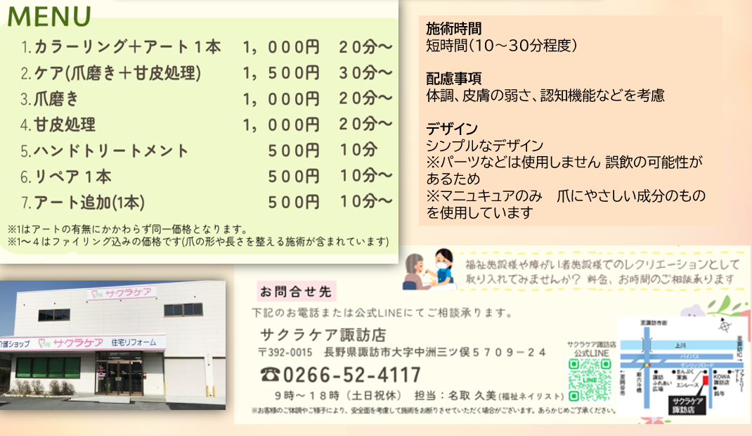 令和7年10月からサクラケア諏訪店で福祉ネイルを始めました。