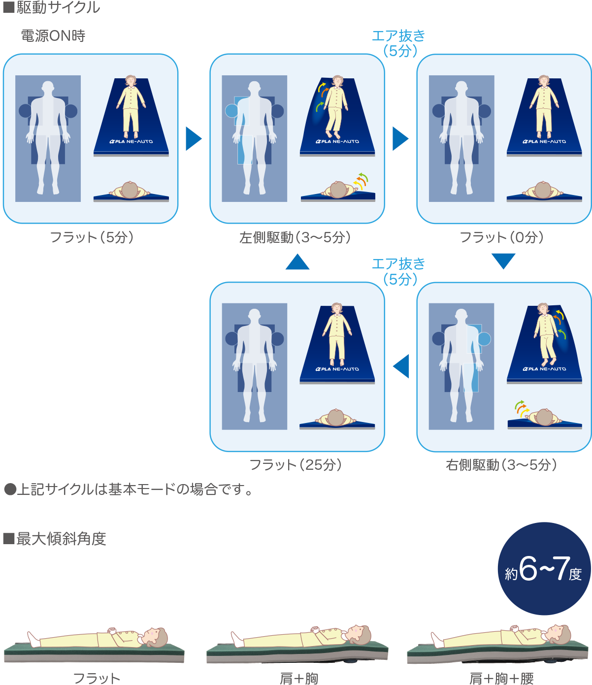 自動体位変換機能を搭載することで、療養者のADL維持と介護者の負担軽減を目指したマットレスです。