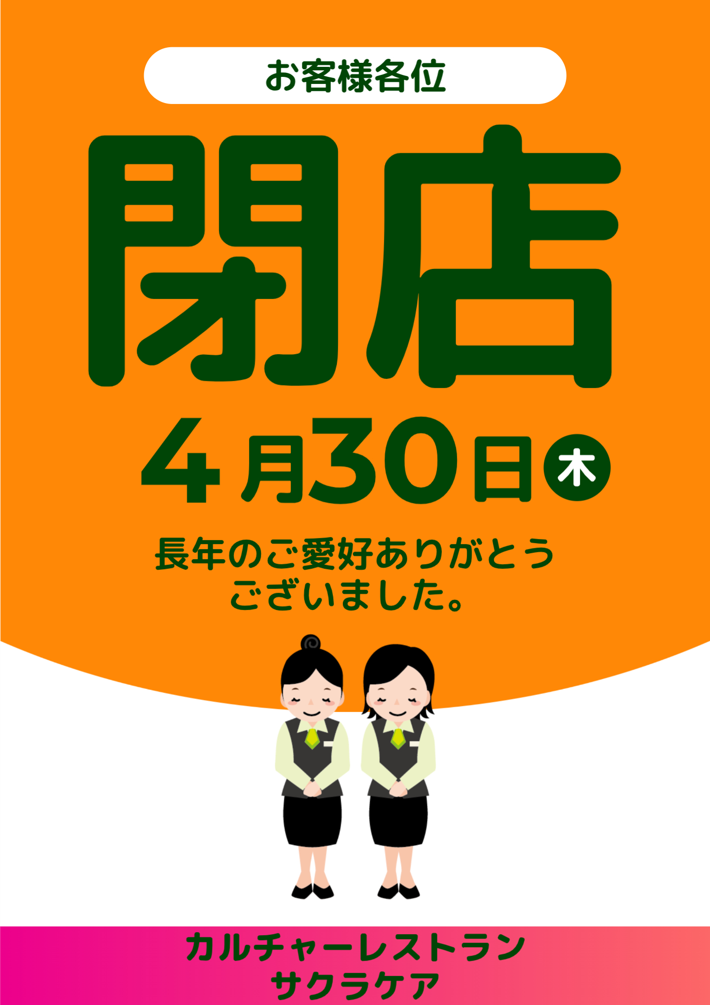 【閉店のお知らせ】カルチャーレストランサクラケア